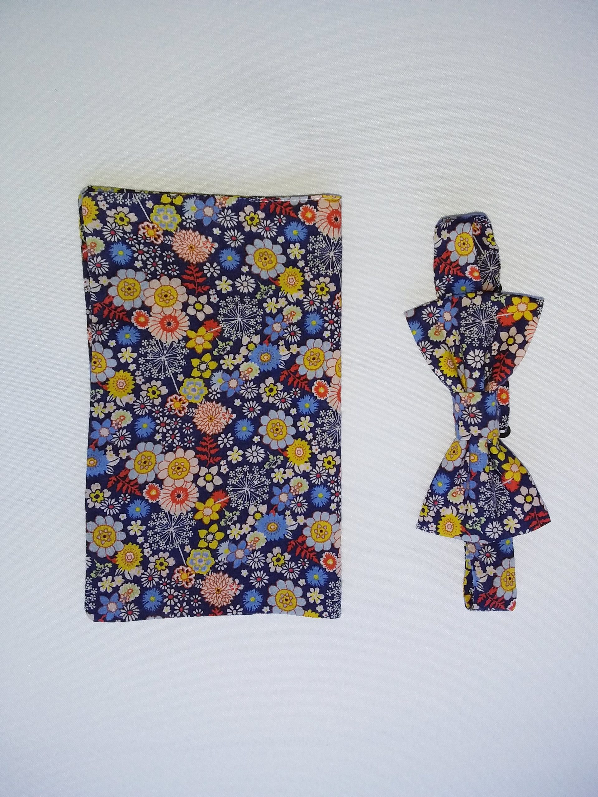 Jolie pochette fleurie qui accompagnera parfaitement le nœud papillon.